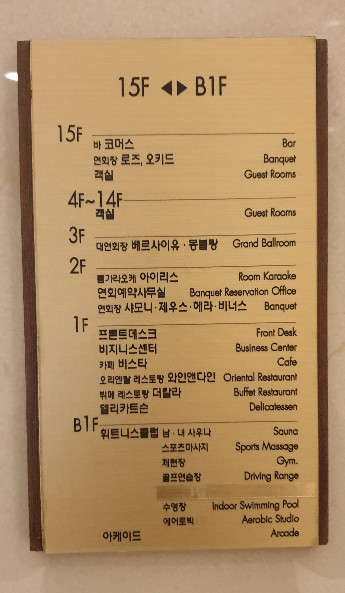 리베라호텔 각 층별 안내도. 1층이 더칼라 부페식당.