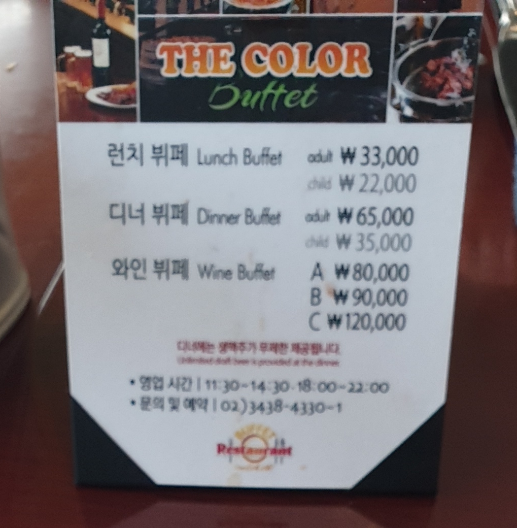 참고로 뷔페 가격 올려본다. 점심 런치는 3만3천원. 25년 호텔 점심식사인데 괜찮은 가격이다.