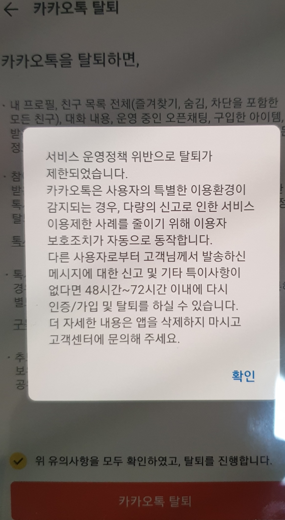 3. 카카오톡 탈퇴가 안될 때(서비스 운영정책 위반)