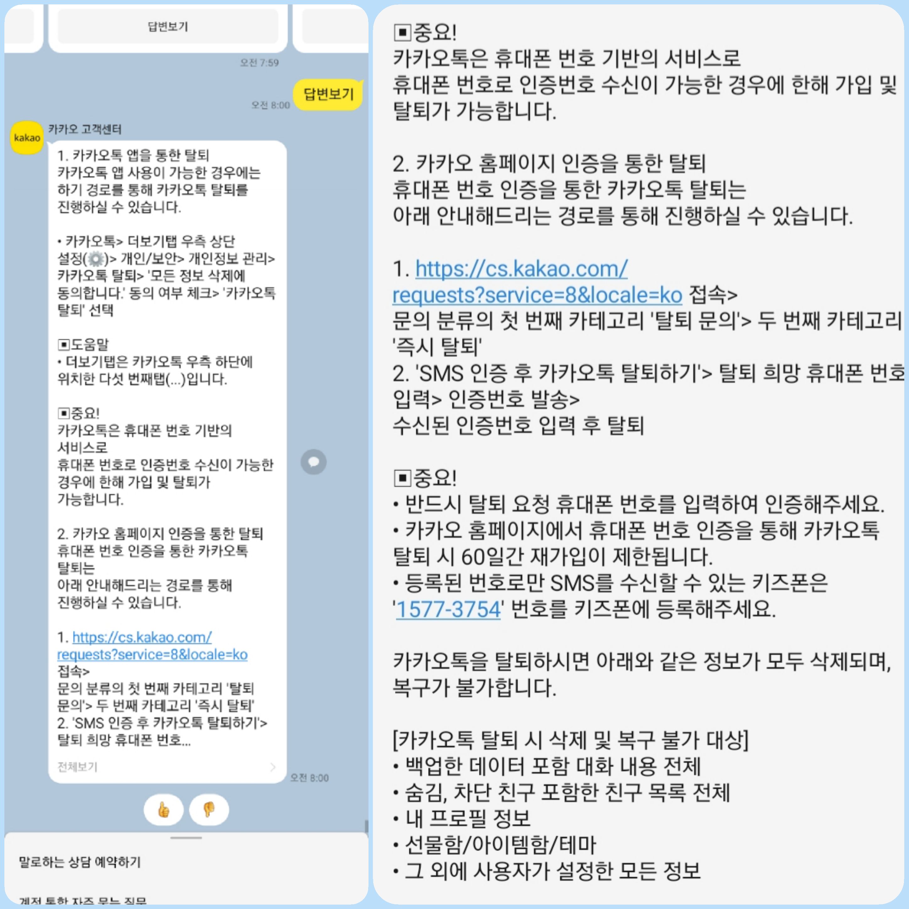 우선 카카오가 일려 주는 공식적인 탈퇴방법은 아래와 같다.